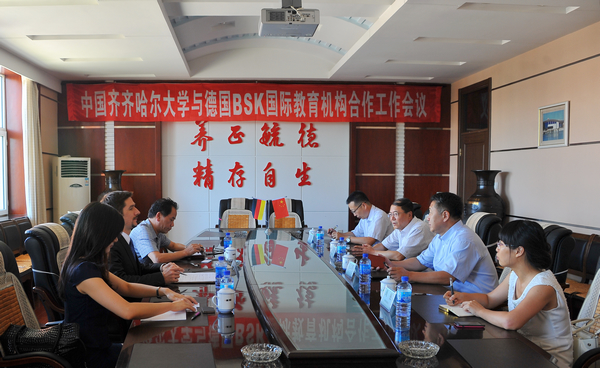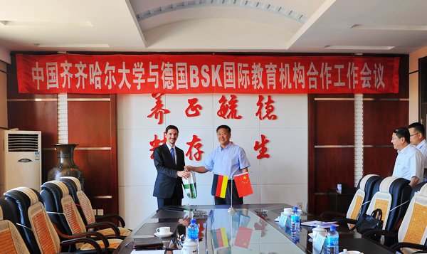 会上,校长马立群代表学校对德国BSK国际教育机构代表团到我校访问并举行合作工作会议表示热烈欢迎。他说,在我校成立的德语中心,是学校与德国合作伙伴共同搭建的跨国界、跨学科的平台,极具战略意义。双方以合作的诚意和务实行动,切实建设和发展好德语中心,不断提升合作层次和水平。我校通过合作,把握精髓,更新观念,积极学习德方的人才培养理念和培养方案,从学校人才培养、实习实训到企业录用人才全过程,既把握前沿性知识,也学习基础性知识,在教师人才培养等方面不断加大力度,努力为我校培养高素质应用型人才奠定了坚实的基础。双方在合作中要实现互惠双赢,我们对“中德国际工程师学院”项目在中国东北地区落地充满信心,对双方合作发展前景充满信心。