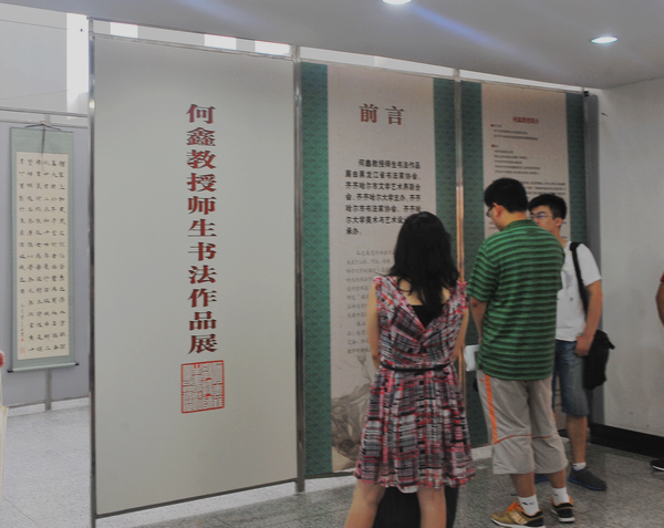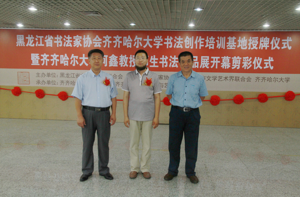 何鑫教授现为我校美术与艺术设计学院美术系主任、学科带头人、硕士生导师,中国书法家协会会员,省书法协会理事、评审委员,市书法家协会副主席,是我省书法创作、研究、教育的青年才俊代表人物之一,是省内书法界公认的资深的青年书法名家,在书法创作、教学、研究方面均有突出成就。早在二十年前,他的作品就曾入选中国书协举办的“全国首届正书大展”,此后作品连续入展了包括“首届中国书法兰亭奖(创作奖)书法篆刻作品展”、“全国首届青年书法篆刻展”、“全国首届大字书法艺术大展”、“全国第八届书法篆刻展”等书法专业全国性展览二十余次;应邀参加“中国当代名家系统工程?全国五百家书法精品展”等国内当代权威书法大展十余次,曾应中国书协、西泠印社、省委宣传部、省文联等邀请,历任东北地区及本省重要书法篆刻展赛评委,并作为黑龙江省书法代表团成员应邀赴韩国、台湾等国家和地区举办展览,并进行书法文化交流活动,受到书界同行的一致好评,被台湾两岸和平艺术联盟聘为书法艺术顾问;部分作品被第29届奥运会组委会、国家体育场(鸟巢)、中国文字博物馆、中国书法家协会、黑龙江省博物馆以及日本、韩国、印度、俄罗斯、美国、德国、台湾等国家和地区大学与文化艺术机构收藏。何鑫教授对中国古代书法教育史和黑龙江地域书法史的研究尤为深入,对黑龙江书法史起源时间的研究判定,打破了旧说,在国内书法史学界都有一定影响,其作品多次参加公益捐赠义卖活动,曾荣获中国书法家协会授予的“书法进万家活动先进个人”、省书法家协会授予的首批“德艺双馨”书法家等称号。