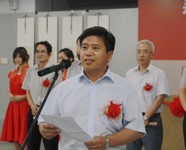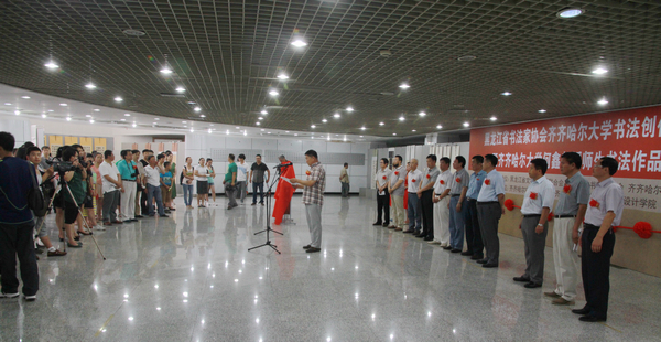 校长马立群宣布:“何鑫教授师生书法作品展开幕!”