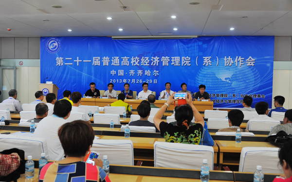 第二十一届普通高校经济管理院(系)协作会年会的主题是:“十八大精神引领下经济管理学科发展、专业建设与人才培养”,由普通高校经济管理院(系)协作会主办,我校经济与管理学院承办,来自全国各地的45所普通高校经济管理院(系)等的专家学者以及中国铁道出版社、机械工业出版社、清华大学出版社、电子工业出版社、哈尔滨工程大学出版社等单位200余名代表、嘉宾参会。