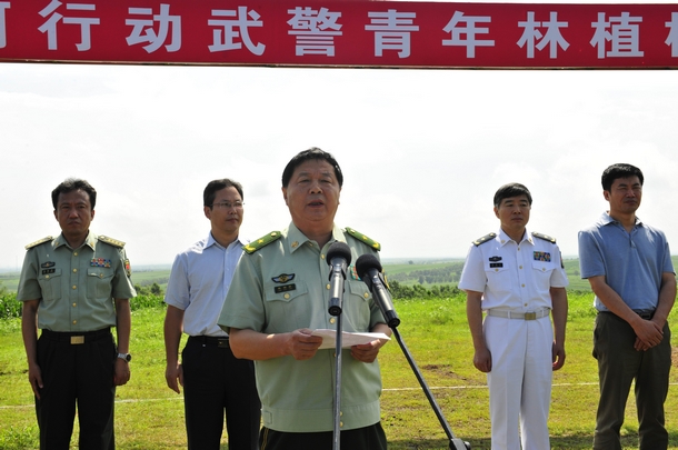 陈国桢在讲话中高度评价武警青年林建设是一项功在当代利在千秋的公益事业,是加强警政、警民团结,警地共同推进生态文明建设的具体举措。