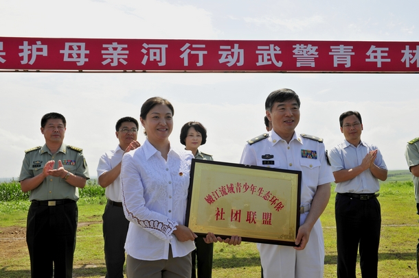 仪式上,武警部队向龙江县人民政府捐赠项目资助资金,“嫩江流域青少年生态环保社团联盟”成员单位的代表tyc1286太阳集团团委副书记苏醒接受了解放军总政治部组织部副部长蔡善飞的授牌,出席活动的领导还为青少年生态监护队授旗。
