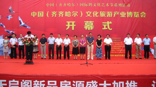 黑龙江省旅游协会秘书长朱继英、省旅游发展促进会理事长张彦、扎兰屯市政府副市长马旦杰、扎兰特旗副旗长邓贵宾、新浪黑龙江副总经理侯宪利,齐齐哈尔市领导曹书杰、曲秀丽、孙立凯,以及市委宣传部、市农委、市旅游局、市公安局、市扎龙局、市文广新局和齐报业集团等单位的领导和来自大庆、黑河、大兴安岭、呼伦贝尔“4+1”城际旅游联盟城市代表,来自老挝、缅甸、越南、巴基斯坦、台湾、香港等地的参展代表出席开幕式。