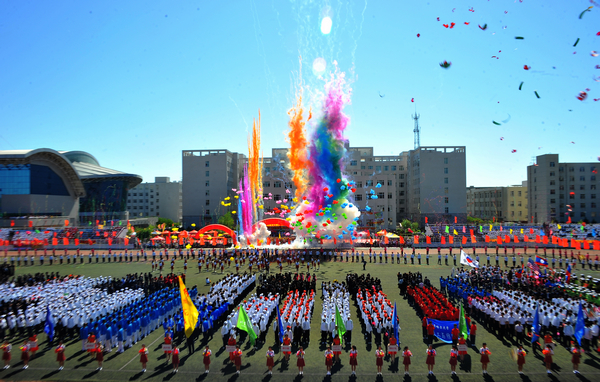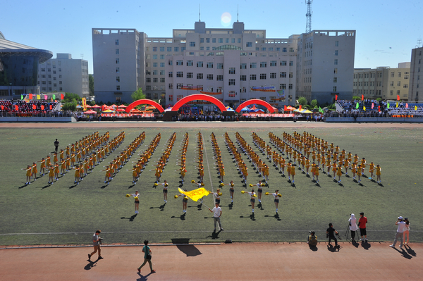 西区体育场上,方阵猎猎,彩旗招展;体育健儿,英姿飒爽。