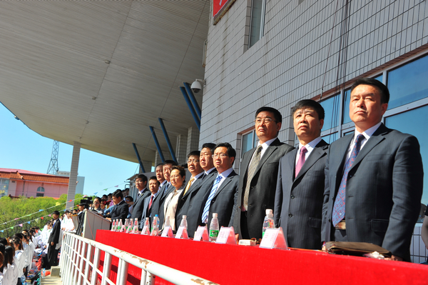 与会校领导李海红、马立群、王凤琴、盖元臣、张学军、郑喜群、王刚、吕晓辉、李英杰、李敏义作为颁奖嘉宾,分别为此前举行的学女五千米、学男万米等项目金银铜牌获得者颁奖。各项比赛决赛结束后中,大会主席团有关成员分别在会场为获奖同学颁发奖牌和证书,成为我校运动会赛场中一道亮丽的风景。