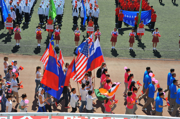 开幕式上,来自各单位、各学院师生代表队迈着整齐的步伐、精神饱满地依次在主席台前接受大会的检阅。其中,国际交流学院的来自美国、俄罗斯、韩国等国留学生参加了检阅,集中展示了我校留学生的新面貌。研究生学院师生意气风发地接受了大会的检阅,充分展示了我校研究生教育蓬勃发展的新风貌。