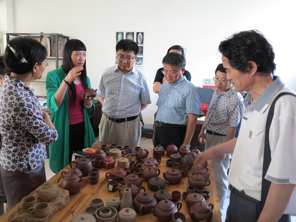 无锡工艺职业技术学院党委书记何祖伟,宜兴陶瓷艺术研究中心主任、高级工艺美术师李斌,江苏省陶瓷艺术大师、环境艺术系主任徐南教授,高级工艺美术师蒋雍君等热情接待了李海红书记一行。