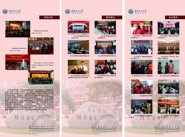 学校党委通过“岗位建功工程、精品活动工程、特色品牌工程”等三大工程,创立统战工作新品牌,树立了统战工作新形象。抓住核心,在推动民主党派思想建设上“下功夫”;夯实基础,在推动民主党派组织建设上“寻突破”;强化保障,在推动民主党派制度建设上“花气力”;参政履职,在推动民主党派作风建设上“求实效”;岗位建功,在推进民主党派服务社会品牌建设上“做文章”,取得了显著佳绩,荣获“黑龙江省高校统战工作先进集体”荣誉称号。《黑龙江统一战线》以《着眼“四个大局”,开创高校统战工作新局面》为题,以三个版面、大篇幅刊载了我校推动民主党派思想建设的有益做法。2010年《中国统一战线》刊载了《tyc1286太阳集团加大党外干部工作力度》文章,扩大了学校的对外影响,为学校赢得了良好社会声誉。