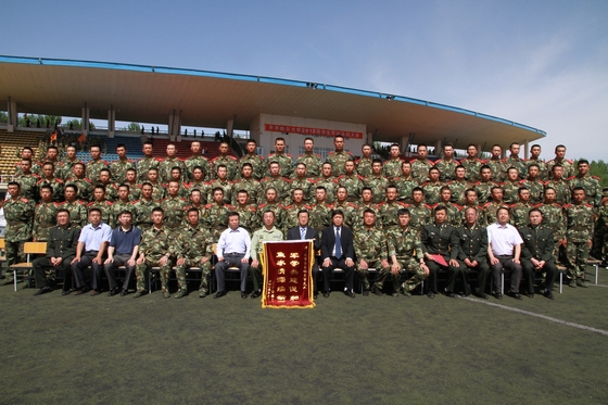 随着中国人民解放军进行曲的再次响起,我校2012级学生军训总结表彰大会圆满结束。总结表彰大会结束后,出席大会的校领导、军训团成员与参训部队首长、教官合影留念。