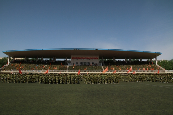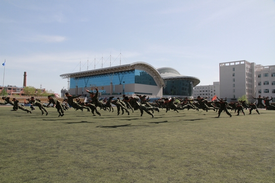 5月26日上午,我校2012级学生军训总结大会在西区田径场隆重召开。军训团政委、校党委副书记盖元臣,军训团政委、副校长郑喜群,军训团团长、副校长李英杰,承训部队首长、武警齐齐哈尔支队政治部副主任范振海中校等出席大会。大会由军训团参谋长、校武装部部长邵丙军主持。