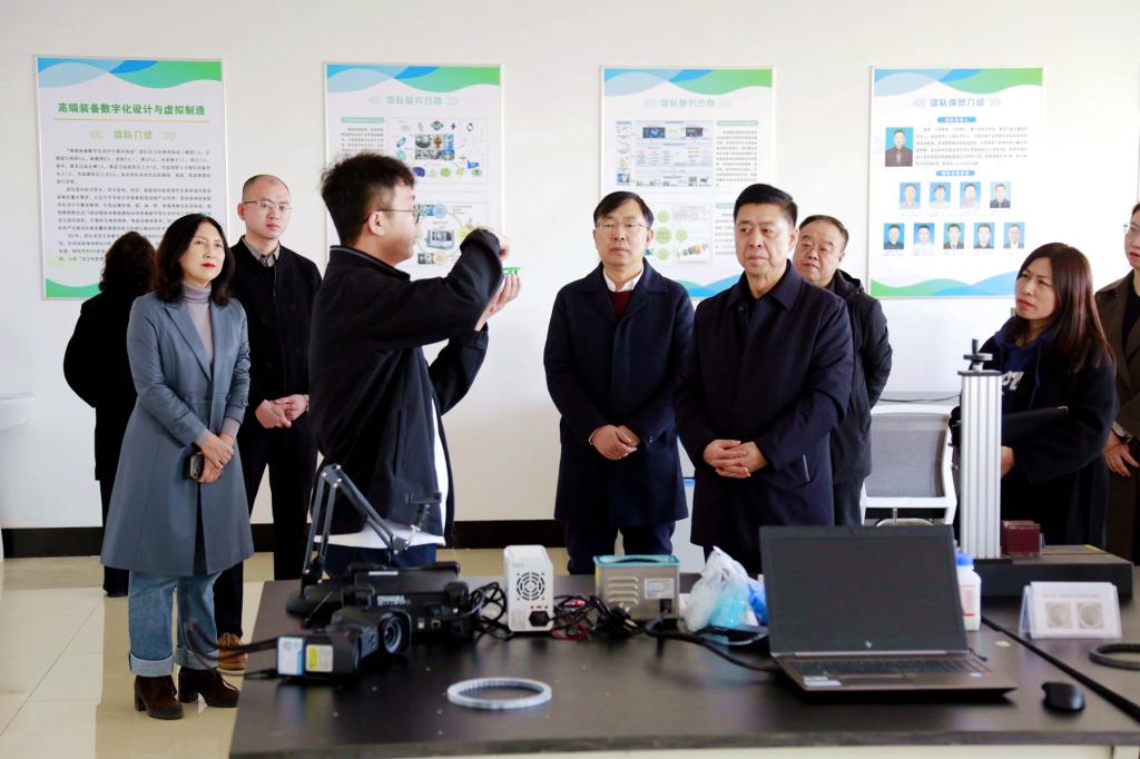 调研组一行深入我校日新大厦“黑龙江省智能制造装备产业化协同创新中心”和“黑龙江省精密制造装备及工业感知工程技术研究中心”,机电工程学院院长徐凤霞详细介绍了相关科研平台建设历程、核心人才梯队及区域科研服务成果,吴志东对所在科研团队服务省4567现代产业体系、推动“环tyc1286太阳集团创新创业生态圈”建设和双创特色党支部的建设与发展进行了具体介绍。