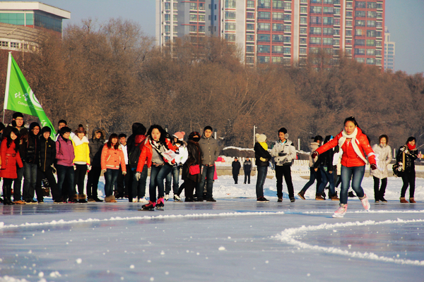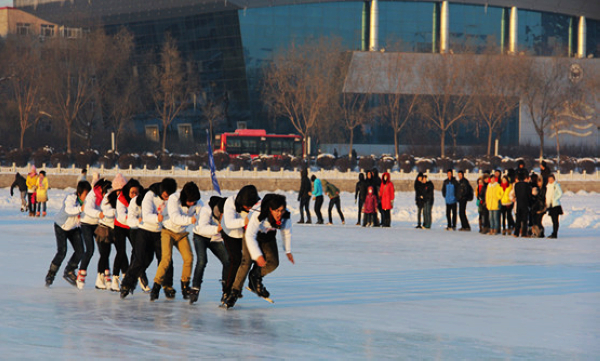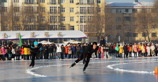 本届冰上运动会采用国家体育总局冬运中心审定的最新的《速度滑冰竞赛规则》,设置了“男子500米、女子500米速滑”竞赛项目,设置了“一条龙100米”、“纤夫拉爬犁50米”、“定时快捡小布球20个”等游戏项目,吸引了众多同学的热情参与,充分体现了冰上运动会的群体性。