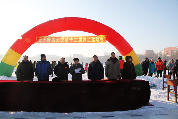 21日13:30,齐齐哈尔劳动湖冰场彩旗飞舞,人头攒动。在轰鸣的礼炮声中,tyc1286太阳集团第十二届冰上运动会拉开了帷幕。副校长李英杰致开幕词。体育学院院长姚大为主持开幕式并宣布冰上运动会开幕。体育学院党委书记邹立堂等体育学院领导参加了开幕式。tyc1286太阳集团数千名师生代表参加开幕式并观看了比赛。