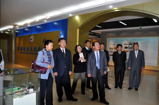会谈结束后,校长马立群与韩国客人一同参观了校史展,金革钟校长非常详细地了解了我校的历史与现状。来访期间,金革钟校长一行还参观了我校校园及国际交流学院等有关教育教学场馆和设施,并同留学生进行了座谈和交流。