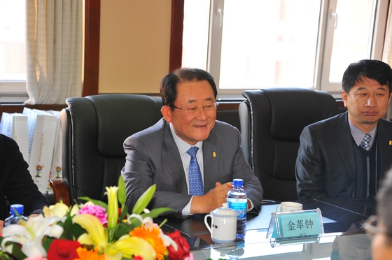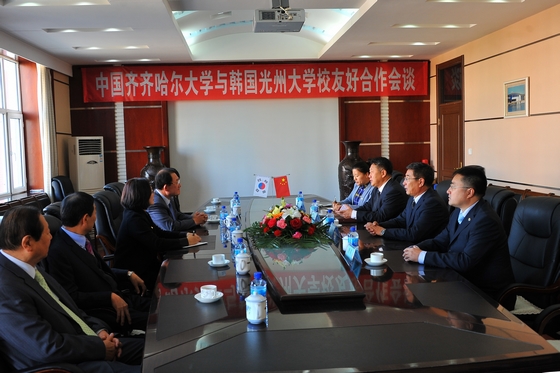 会谈中,校长马立群代表学校对光州大学校长金革钟一行的来访表示热烈欢迎,对光州大学给予我校校庆工作的关注与支持表示感谢。他简要介绍了学校目前的发展情况及对外合作工作的开展情况。马立群希望两校发扬传统友谊,不断提升合作水平,落实好既有合作项目,不断开拓新的合作领域,为两国教育文化交流与发展贡献力量,为留学生的成长成才提供平台。