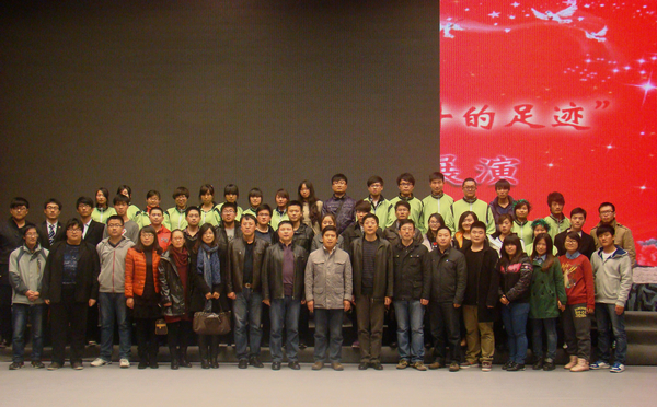 展演结束后,常务副校长郑喜群走上舞台,与参加展演的师生合影留念,并对他们成功的展演给予肯定和鼓励,号召广大同学以优秀校友为榜样,大力弘扬“致知 致用 致远”为主要内涵的优良学风,努力成长为中国特色社会主义事业的合格建设者和可靠接班人,服务社会建功业,实现自己的人生梦想。