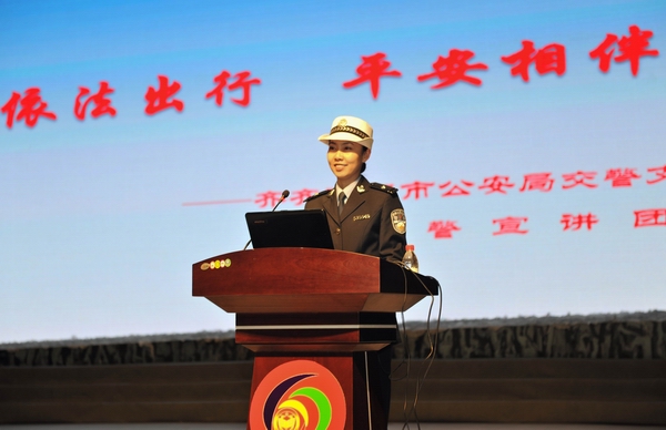 为进一步提高全校师生的交通安全意识,打造安全有序的交通环境,按照我校《关于做好党的十八大安保攻坚战暨2012“119”消防安全活动月实施方案》的日程安排,11月14日下午16时,齐齐哈尔市交警支队女子宣讲团受学校的邀请,在中区文化宫为全校师生做了交通安全知识专场报告会。出席报告会的领导有校党委副书记盖元臣同志、齐齐哈尔市公安局党委委员副局长张学柱同志、齐齐哈尔市公安局党委委员交警支队支队长孙菠及交警支队班子成员,校相关部门领导、教师代表及学生代表近1500人,报告会由保卫处处长邵丙军同志主持。