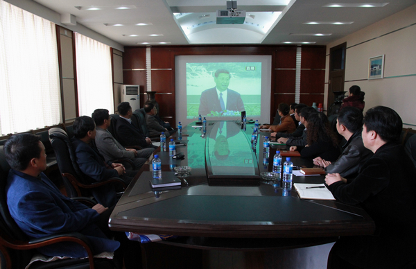 正在国家教育行政学院参加高校领导干部进修班学习的我校党委书记李海红与进修班师生一同收看了央视的现场直播。在校校领导与校党委理论学习中心组成员马立群、王凤琴、盖元臣、张学军、吕晓辉、王刚、张树军、尹鸥、齐宏伟、黄伟中、田志峰等一同在504会议室集中收听收看了央视的现场直播,认真聆听了中共中央总书记习近平发表的重要讲话。
