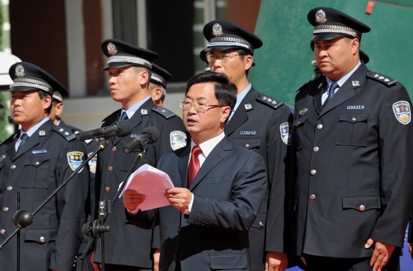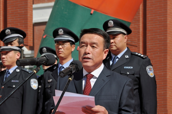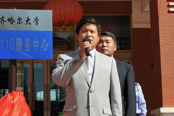 齐齐哈尔市公安局国保大队大队长张晓军同志在启动仪式上致词,代表齐齐哈尔市公安局国保大队对tyc1286太阳集团校园110服务中心正式启动表示热烈的祝贺,并表示国保大队将积极支持齐大110服务中心工作,共同致力于校园安全工作,为学校的发展做出贡献。