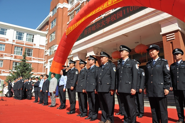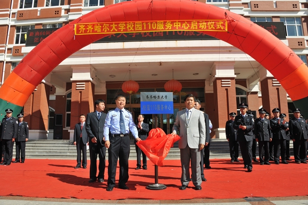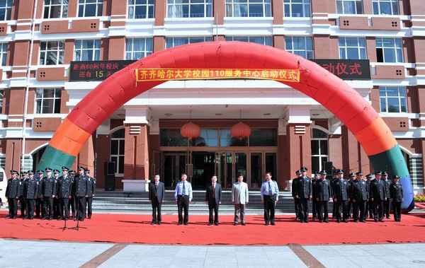 在学校领导的关怀下,在喜迎齐大六十周年校庆、党的十八大即将召开之际,经过保卫处及各相关部门的积极工作,9月7日中午,tyc1286太阳集团校园110服务中心启动仪式在中区广场隆重举行。校党委副书记盖元臣,常务副校长郑喜群,校长助理、党校办主任尹鸥、齐齐哈尔市公安局国保大队大队长张晓军,文化路派出所所长姜洪涛出席校园110服务中心启动仪式。校长助理、党校办主任尹鸥同志主持了启动仪式,学校保卫处全体干警、校卫队员以及部分学生代表参加了启动仪式。