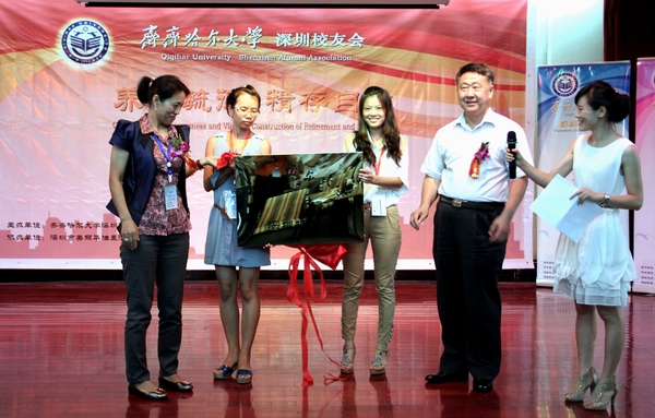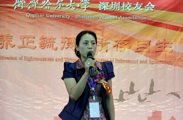 深圳校友会会长胡萍代表校友讲话,她表示对学校领导百忙中抽时间来参加成立大会感到高兴,希望深圳的每一位校友牢记母校的教诲,通过校友会的平台多联系,长沟通,努力拼搏,共同发展,“今日我以学校为自豪,他日学校以我为骄傲”,最后她代表全体校友祝福母校生日快乐!