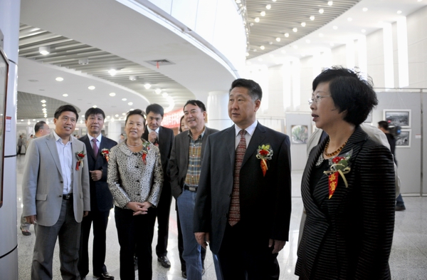 齐齐哈尔市人大副主任曹书杰,市书法家协会名誉主席杨珉,市文联主席邱利峰,市委宣传部部务委员王宏镝,市摄影家协会主席陈寿安,市书法家协会主席吴学谦,市文联副主席朱宏宇,我校校长马立群、党委常务副书记王凤琴、常务副校长郑喜群、工会主席李敏义等出席了开幕式并参观了展览。校长马立群为向我校建校60周年捐赠作品的齐齐哈尔市22位艺术家颁发了收藏证书。