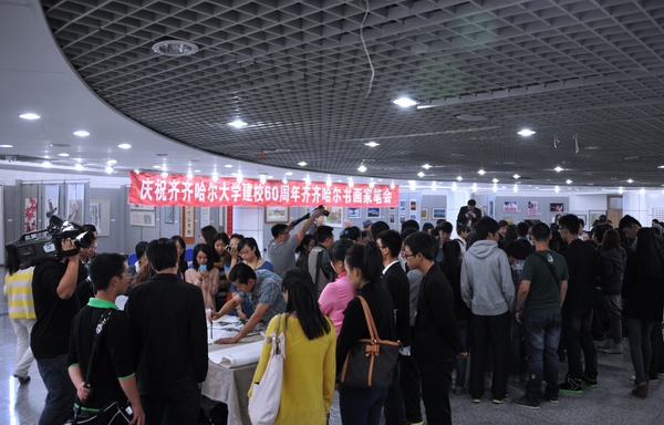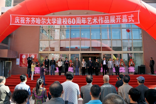 她强调,为进一步继承优良办学传统,推进文化传承创新,我们在校庆期间将举办一系列文化、学术活动。本次艺术作品展就是其中一项重要活动。今天参展艺术作品包括我校师生绘画、书法、摄影作品,其中还有齐齐哈尔市知名艺术家为我校校庆捐赠的精美作品。本次参展作品内涵丰富,题材广泛,从不同侧面反映了嫩江流域的风土人情和地域风光,抒发了齐大人对美好生活的挚爱之情和昂扬向上的精神风貌。相信这次艺术盛宴一定会为我校六十周年校庆增添靓丽的风采,为全校师生提供一次难得的文化艺术熏陶。