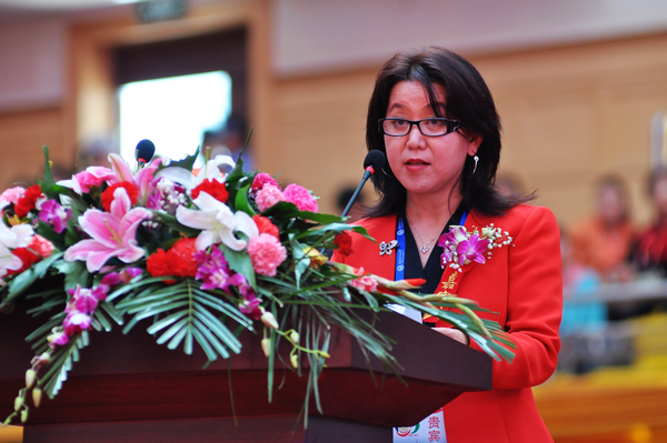 韩国东新大学校长金毕植女士代表国外友好大学致辞。