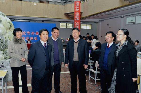 校长马立群在校党委副书记盖元臣、副校长郑喜群和组委会部分成员的陪同下亲临比赛现场,亲切询问大赛及本届科技节的相关情况,对我校大学生科技活动提出要求,鼓励全校学生积极投身科技创新活动,牢固树立科技意识、创新意识、竞争意识和成才意识,努力成为高素质、高技能并适应社会需求的合格人才。