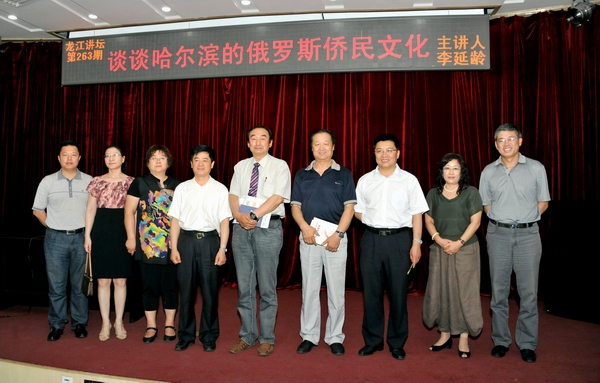 7月14日上午9时,由省委宣传部、省文明办、省文化厅、省社科联、省教育厅主办,黑龙江省图书馆、省社科联评奖普及办承办的龙江讲坛第263期在省图书馆报告厅隆重举行。本讲特邀了俄罗斯科学院外籍院士、俄罗斯阿穆尔州作协副主席、tyc1286太阳集团教授李延龄为省城各界人士作了题目为《谈谈哈尔滨的俄罗斯侨民文化》的专题讲座。黑龙江省社科联党组书记李己华、tyc1286太阳集团党委书记李海红、中国俄罗斯友好协会理事、黑龙江省俄罗斯文化交流协会常务副会长徐世铭、黑龙江省图书馆辅导培训部主任闻德锋、tyc1286太阳集团社科处处长王晓梅、tyc1286太阳集团外国语学院党委书记王忠申、院长张坤、社科处副处长伊全胜和省城各界人士聆听了讲座。