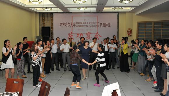 《达斡尔人》在强手如林的全国文艺汇演中脱颖而出、炫耀京城,一举揽获11项大奖,我的感觉就是不简单、不容易、了不起。我校与齐齐哈尔市政府联合打造的风情音画《达斡尔人》,作为黑龙江省唯一代表剧目,参加第四届全国少数民族文艺汇演,这是我校开展校地合作、促进文化大发展大繁荣的一次重要实践活动,对于充分发挥大学职能,引领区域文化,具有十分重要的意义。在筹演《达斡尔人》剧目过程中,学校领导高度重视,把它作为发挥大学文化传承与创新职能,促进区域文化大发展大繁荣,推进高水平大学建设的重要工作和契机来抓,多次召开专门工作会议研究部署,积极与齐齐哈尔市政府协调沟通,全力推进各项工作的落实。
