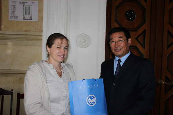 在俄罗斯访问期间,副校长吕晓辉首先访问了俄罗斯莫斯科国立大学,受到了该校外事处副主任吉玉娜女士的亲切接待,并参观、考察了莫斯科国立大学文化及教育设施。同时亲切看望了正在该校学习的我校国际交流学院对外汉语教师孙海丽。