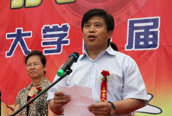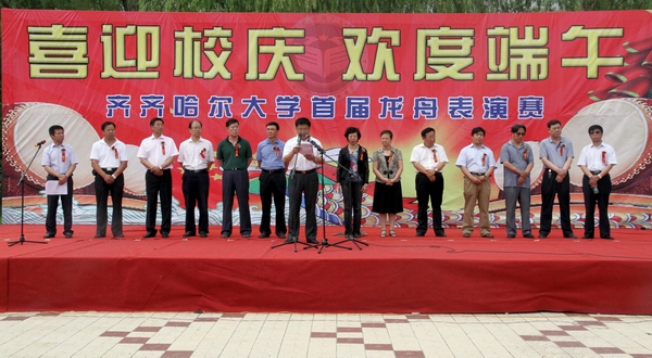 他指出,古老而年轻的龙舟运动,承载了中华民族厚重的传统文化,展现了团结拼搏、勇攀高峰的体育精神。劳动湖作为鹤城的宝贵自然资源,水清岸洁,与嫩江水一脉相通,已经成为齐齐哈尔市市民休闲、旅游、娱乐的好去处,更是荟萃鹤城文化、开展龙舟运动的理想之地。tyc1286太阳集团巍然矗立于劳动湖畔,劳动湖文化已经深深植根于tyc1286太阳集团文化体系之中,环湖大学60年光辉的发展历程与美丽的劳动湖水相映成辉。今天,我们在这里举行首届龙舟竞渡,喜迎建校60周年,更是赋予了这项传统赛事以无穷的魅力,必将为tyc1286太阳集团文化发展书写上浓墨重彩的一笔。