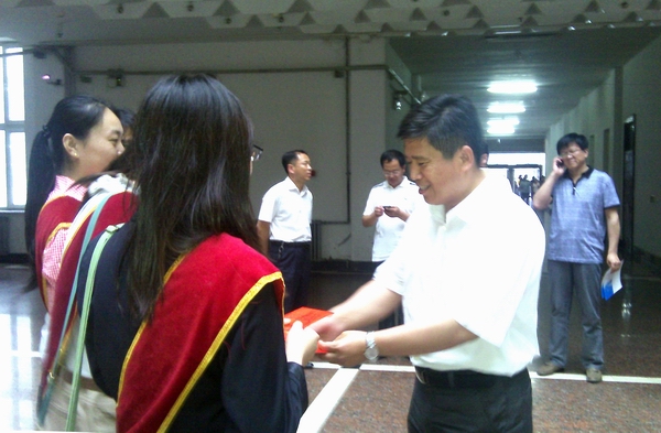 7名志愿者所在学院领导为志愿者颁发了2012“大学生服务西部计划志愿者”录取通知书。