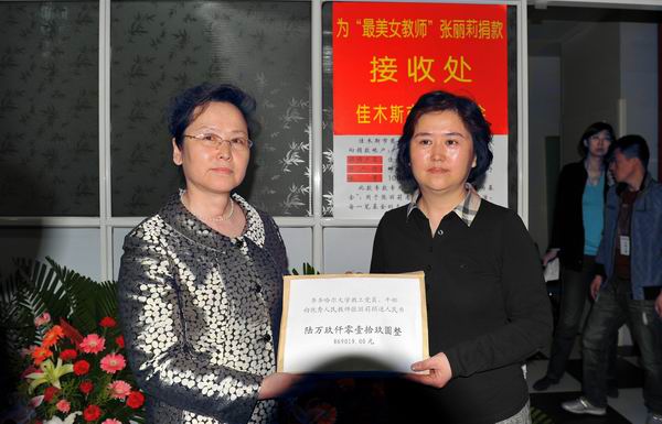 平凡铸师魂,壮举弘大爱。“最美教师”张丽莉的英雄事迹感动中国,感动校园。5月18日上午,tyc1286太阳集团党委副书记王凤琴,校长助理、党办、校办主任尹鸥,党委组织部长齐宏伟受学校党委委托,前往哈医大第一医院,通过佳木斯市慈善总会向“最美教师”张丽莉老师转交tyc1286太阳集团教工党员、干部教师的爱心捐款6万9千余元。