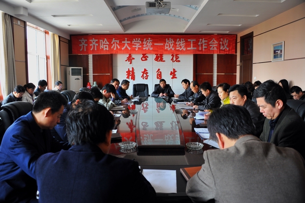 田志峰部长回顾2011年学校统战工作时提到,2011年,学校党委高度重视统战工作,统战系统大事多、喜事多。全国政协副主席、农工党中央副主席陈宗兴、省人大常委会副主任、农工党中央副主席、黑龙江省主委陈述涛莅临我校。全国政协常委、民革中央副主席郑建邦参加了由我校联合主办的纪念“江桥抗战”80周年研讨会。以全国政协委员、校长马立群教授为代表的四级政协委员积极建言献策,履行职责,扩大了学校影响力。统战工作整体推进,成果丰硕,成效显著。齐大基层委员会外语支部荣获民盟中央先进集体称号,我校荣获“全省高校统战工作先进集体”光荣称号。2011年是市级党派组织换届年,各民主党派市委相继召开了代表大会,顺利完成了换届工作,我校有9名党派成员当选常委以上职务。学校各民主党派成员、无党派代表人士立足岗位,积极在高水平大学建设中岗位建功。九三学社成员、化学与化学工程学院院长郭祥峰被聘任为龙江学者特聘教授。我校无党派代表人士苏立强教授的学术论文荣登“2010年中国百篇最具影响国内学术论文”行列。发挥民主党派的智力优势,打造了一批党派精品活动。全面贯彻党的宗教基本方针政策,认真做好了民族宗教工作。加强了统战部自身建设,不断提高了统战工作服务学校科学发展的能力。