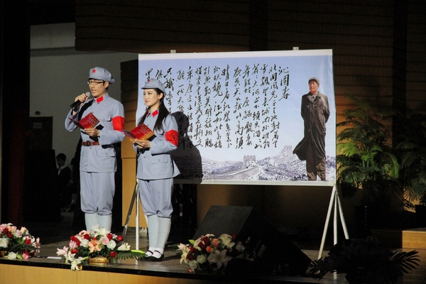 激情岁月,树中国青年丰碑。难忘的是血与火的洗礼,不变的是钢铁般的信念。诗朗诵《抉择》以母子对话的形式讲述了一个身处战火纷飞年代的热血青年,在含辛茹苦养育自己的母亲和祖国沉甸甸的使命两者之间,依然做出为大家舍小家的无悔抉择的感染故事,展示出中华儿女为祖国,为民族,抛头颅,洒热血,敢为他人先的豪情壮志,树立了中国青年不朽的丰碑。合唱、朗诵《黄水谣》饱含深情地表达了青年学子对生养我们的这片土地的无限热爱和身为中国人的无限自豪。红旗如画,岁月如歌。舞蹈《红旗颂》和诗朗诵《回首革命,寄望未来》气势恢宏地表现了中国共产党波澜壮阔的91年征程和中国共产党人敢于天公试比高的革命英雄主义情怀。