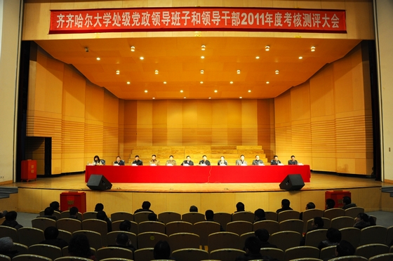 3月7日下午,我校在音乐厅召开全校处级党政领导班子和领导干部2011年度考核测评大会。校党委书记李海红,校党委副书记王凤琴、盖元臣,校党委常委、纪委书记张学军,副校长郑喜群、王刚、吕晓辉、李英杰,校工会主席李敏义,校长助理、教务处处长张树军,校长助理、党办校办主任尹鸥出席大会。学校副处级以上干部、民主党派负责人、校级以上学科带头人和正高级专业技术职务人员参加了测评大会。