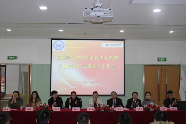 2011年12月18日,我校昆山花桥校友会成立大会在江苏昆山花桥经济开发区简柏特一楼隆重举行,校党委副书记盖元臣出席会议并致辞,花桥经济开发区人事局副局长李欣、兄弟校友会代表、校友总会工作人员以及当日在开发区的数十位校友参加了成立大会。