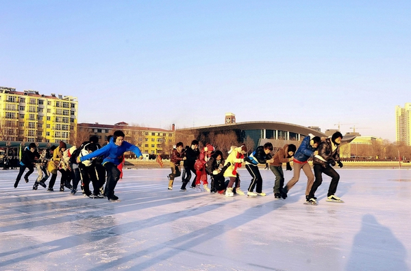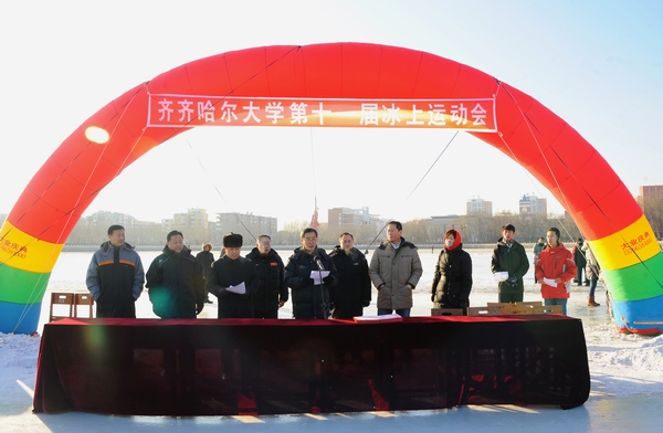 12月26日下午,齐齐哈尔市劳动湖冰场彩旗飞舞,人头攒动。在轰鸣的礼炮声中,我校第十一届冰上运动会拉开了帷幕。