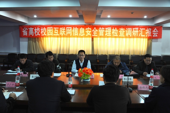 会上,省教育厅学生处副处长袁伟传达了上级有关单位关于高校校园互联网信息安全管理工作的有关要求和精神。调研组听取了包括我校在内的驻齐市四所高校互联网信息安全工作汇报,并就有关问题交换了意见和看法。