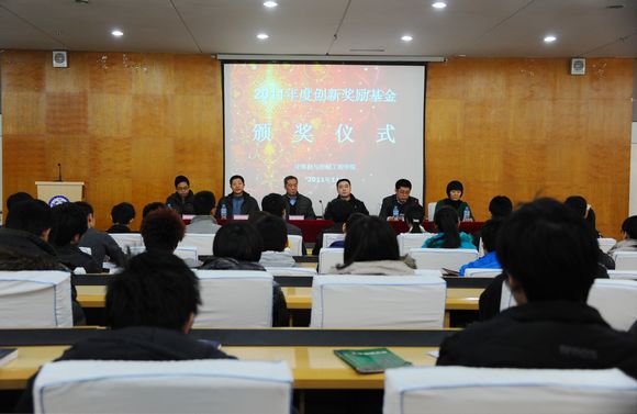 11月22日上午,我校在西主7楼学术报告厅举行2011年度自动化专业创新奖励基金颁奖仪式,对获得创新奖励基金奖和实习鼓励奖的11名学生进行了表彰和奖励。
