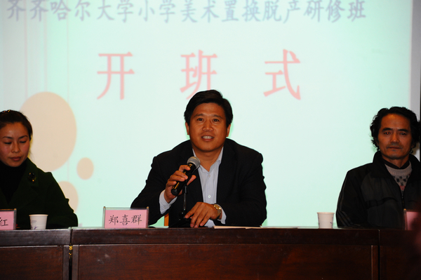 2011年10月8日下午,“国培计划”(2011)黑龙江省农村骨干教师培训项目tyc1286太阳集团小学美术置换脱产研修班开班式在德润大厦3楼会议室举行,副校长郑喜群教授出席开班式并讲话。