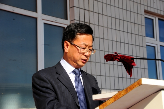 校长马立群在大会上对全体新生发表了热情洋溢的讲话。他首先代表学校领导班子以及全校师生员工,向来自全国各地的2011级全体新生表示热烈的祝贺和诚挚的欢迎,对承担我校军训任务的中国人民武装警察部队齐齐哈尔支队的全体官兵表示衷心地感谢和崇高的敬意。