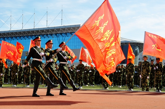 军训是大学生在校期间学习、生活的第一课。军训动员大会的胜利召开,标志着我校2011级新生军训正式拉开了帷幕。在为期9天的军事训练中,将对同学们进行中国国防、军事思想、中国人民解放军《内务条令》、《纪律条令》、《队列条令》等军事理论课教育;进行队列训练、军体拳训练、分列式等军事技能训练;进行纪律作风、内务卫生等科目的教育,用中国特色社会主义理论武装头脑,用军训实践培养学生体魄、锤炼作风和品质;同时,军训团还将开展军学共建、军学联欢、参观和平广场、军旅歌曲和爱国主义歌曲比赛、观看军事教官军事技能表演、参加新生音乐会等丰富多彩的教育实践活动,把爱国主义、集体主义和社会主义教育推向新的层次和水平。(摄影:樊友才、陈振东、孙旭磊)