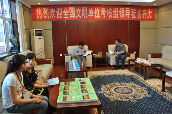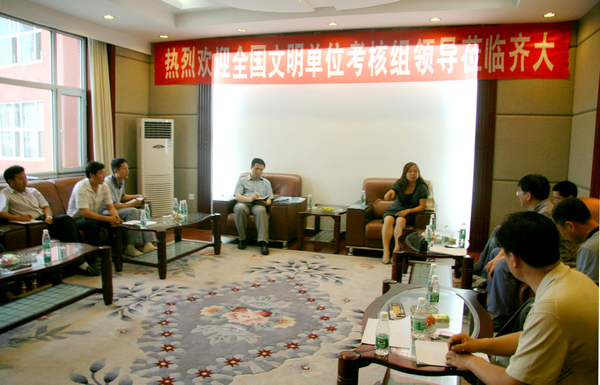 考核组一行听取了我校党委副书记、校文明委副主任王凤琴代表学校所作的题为《巩固成果 创新思路 努力开创文明单位创建工作新局面》的专题工作汇报。汇报思路清晰,简明扼要,重点突出,集中体现了我校全国文明单位创建的“六个三”工作模式(“突出三个着眼点,不断深化文明单位创建工作的内涵”、“强化三个着力点,不断提高师生员工的思想道德素质”、“把握三个关键点,不断提升文明单位创建工作的实效”、“打造三个闪光点,不断形成齐大精神文化品牌”、“围绕三个生长点,不断推进高水平大学建设步伐” 和“夯实三个支撑点,不断完善文明单位创建工作的长效机制”), 实现了文明单位创建工作的科学化、制度化、规范化,并不断将创建工作提升到文明自觉的高度,用新理念引领文明单位创建工作科学发展,向更高的目标迈进。