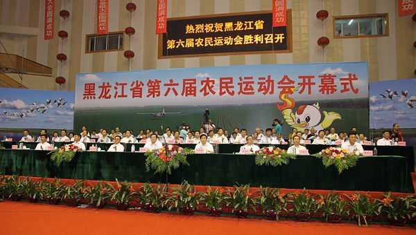 8月2日晚,由省农委、省体育局、省农民体协主办,齐齐哈尔市政府承办的黑龙江省第六届农民运动会在我校体育馆隆重开幕,我校副校长郑喜群应邀出席开幕式并在主席台就座。
