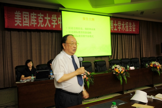 黄天中是教育心理学博士,不仅担任美国纽约州库克大学中国总校区行政校长职务,还担当中国华侨大学大学生涯管理学教授、博士生导师。在6月15日晚,黄天中博士还为我校国际交流学院学生举行了一场关于汉语国际教育的新战略及国际教育教学新模式的学术报告会,在现场与聆听讲座的大学生进行了交流与互动,受到了我校学生的热烈欢迎。