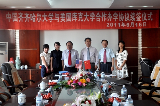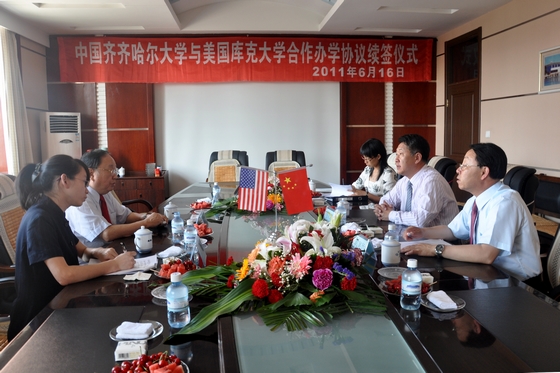 6月16日下午15时许,“中国tyc1286太阳集团与美国纽约州库克大学合作办学协议续签仪式”在中区办公楼504室隆重举行。