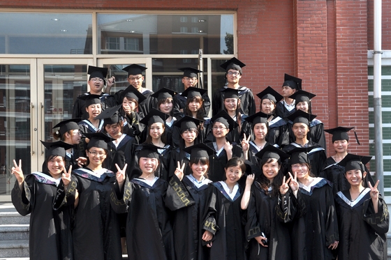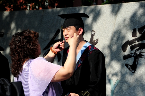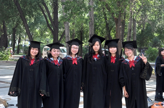 2011届毕业生身着学位服,在校训石前,在教学楼前,在学生公寓旁,在他们学习与生活了四年的“环湖大学”的每一个地方,用镜头记录着必将令他们终身难忘的美好大学生活,留下属于他们每个人的珍贵记忆。